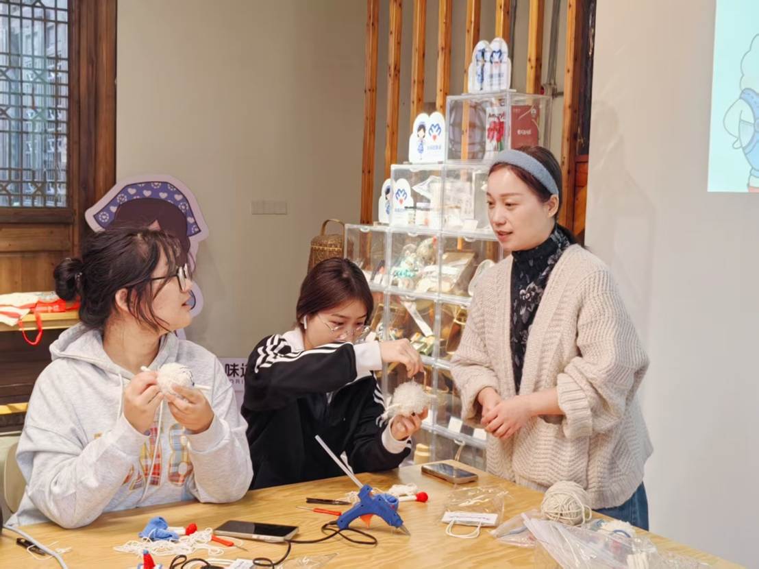 10月28日,长安镇妇女联合会与太阳成tyc33455cc联合主办的“一针一线织非遗:宴球宝宝手作实践”活动在长安镇“妈妈的味道”品牌集合店内收官。活动以校地合作为纽带,推动高校学子走出校园、走进社区,在学习当地钩织非遗、了解特色文化中融入地方,为非遗传承注入青春动能。